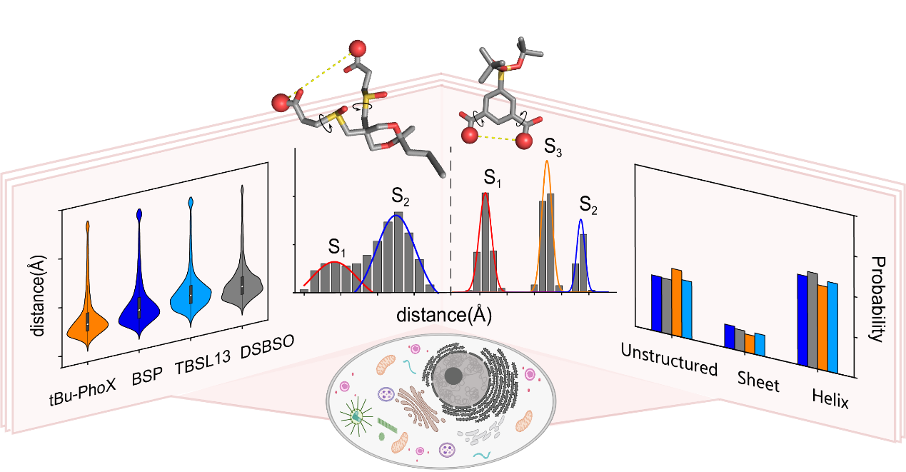 蛋白质的结构及其动态变化是理解其生物功能的核心。现在的实验研究主要局限于解析体外的纯化蛋白,而AlphaFold等结构预测方法只能预测蛋白质的静态结构,难以反映蛋白质在细胞内的结构和动态变化。原位化学交联质谱作为一项新兴技术,能够在细胞环境下研究蛋白质的结构、动态及其相互作用。然而,不同交联剂的结构特性如何影响其在细胞内捕获蛋白动态信息的能力,长期以来缺乏系统性的认识。
