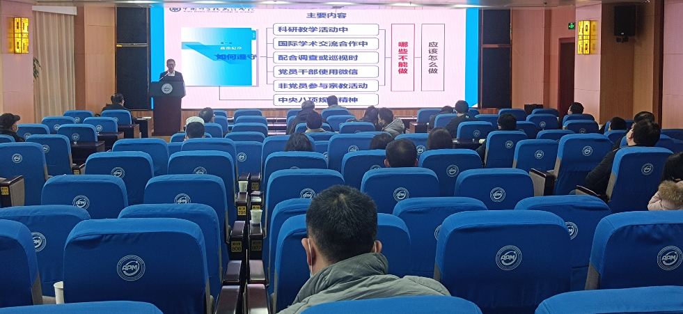 会上,蔡长塔作题为《明理知规 谨守初心——<科研人员纪律规矩应知应会读本>宣讲》的专题报告,详细的介绍了《科研人员纪律规矩应知应会读本》的主要内容,结合警示案例,以案说纪、以案说规。他指出,我们要牢记“创新科技、报国为民”的初心,对纪律规矩要做到“知其然、明其理、懂其作、解其误”,在政治、工作、生活上守纪律讲规矩,当明白人、有为人、守井人,简化工作圈,净化生活圈,纯化朋友圈,管控家属圈,争当廉洁自律的表率,共同营造风清气正的科研生态环境。